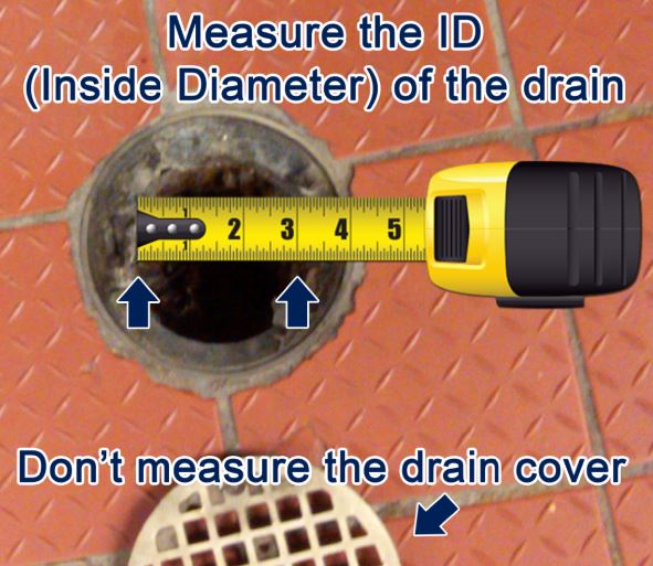Step 3: Ensure you have selected the right size drain strainer. (Please measure before you buy.) Most drains will be 2", 3", or 4". Sometimes there are 3.5" and 6" drain pipes. Our floor drain strainers are either tapered or have an edge so that they are wider at the top and will not fall into the pipe. So for example our 4" strainer will measure 4.5" at the top so that it will sit in a 4" drain.